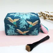 日本の着物にインスパイアされた鶴の刺繍が目を引くボックス型のメイクポーチです。